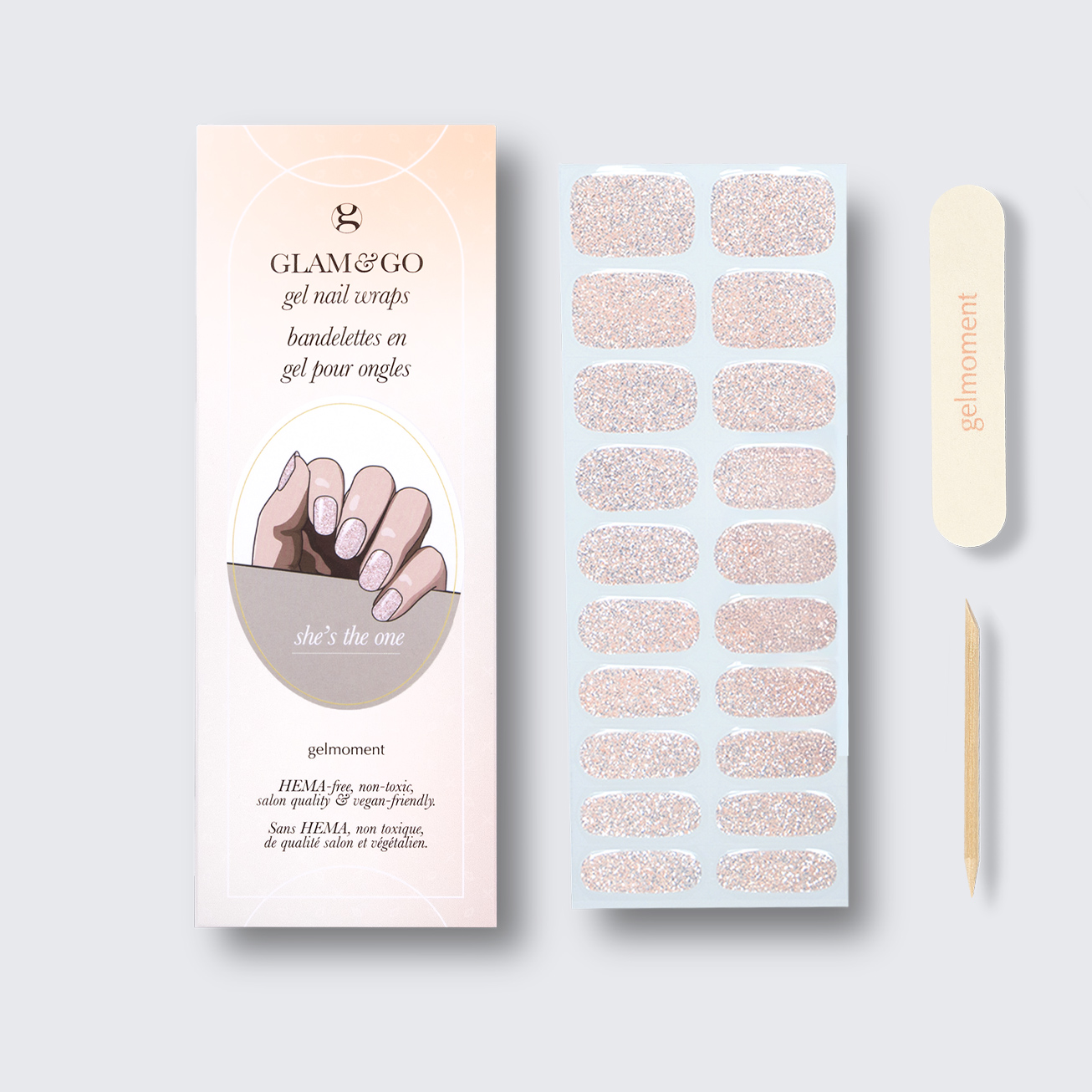 Plus, not only do GLAM & GO gel nail wraps provide the same glossy finish you know and love from our regular gel polish, but they are also HEMA FREE and have a wear time of up to 14+ days.